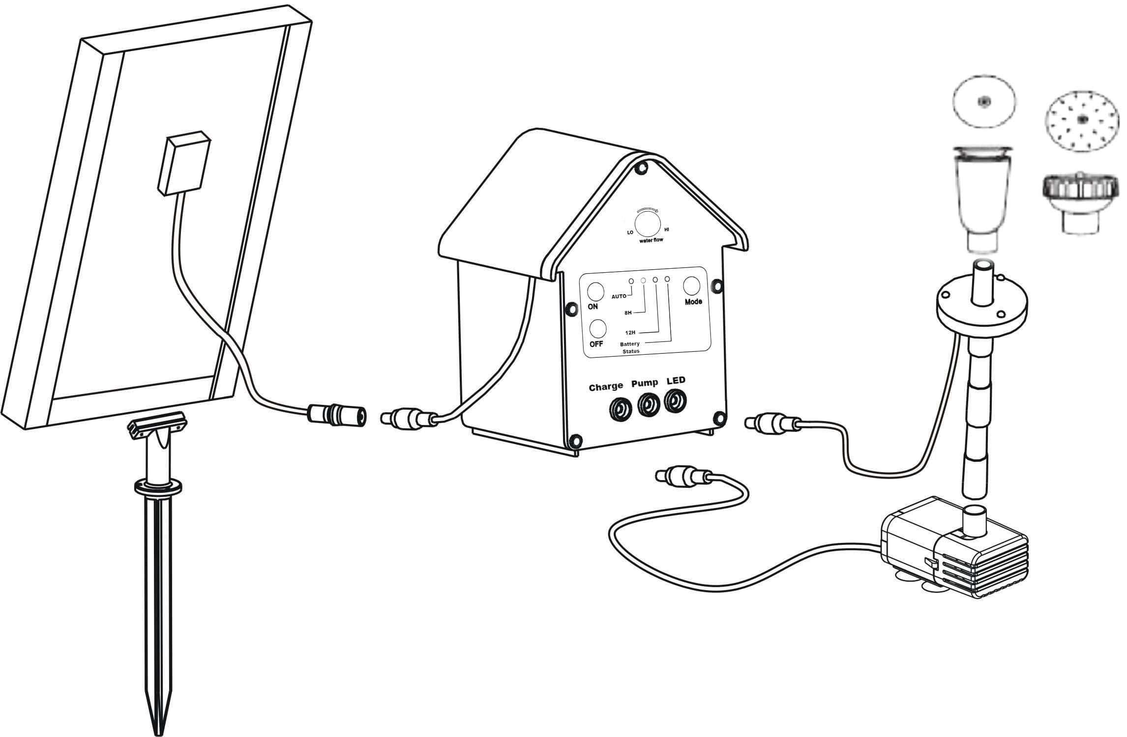 Vandcirkulation er en vigtig faktor for god vandkvalitet. Vand i bevægelse bliver iltet, hvilket bl.a. bidrager til reduceret algevækst. Pumpen er nem at installere, da alle tilbehør såsom fontænesæt og solceller medfølger. På solrige dage oplades det medfølgende lithiumbatteri, så fontænen fungerer også på overskyede dage. Da den er afhængig af solens stråler, fungerer den bedst, når solen skinner mest, ca. maj–september. Derudover medfølger en LED-ring, som sættes på fontænerøret, og dens skumringssensor sørger for, at fontænen lyser nedefra, når mørket falder på.